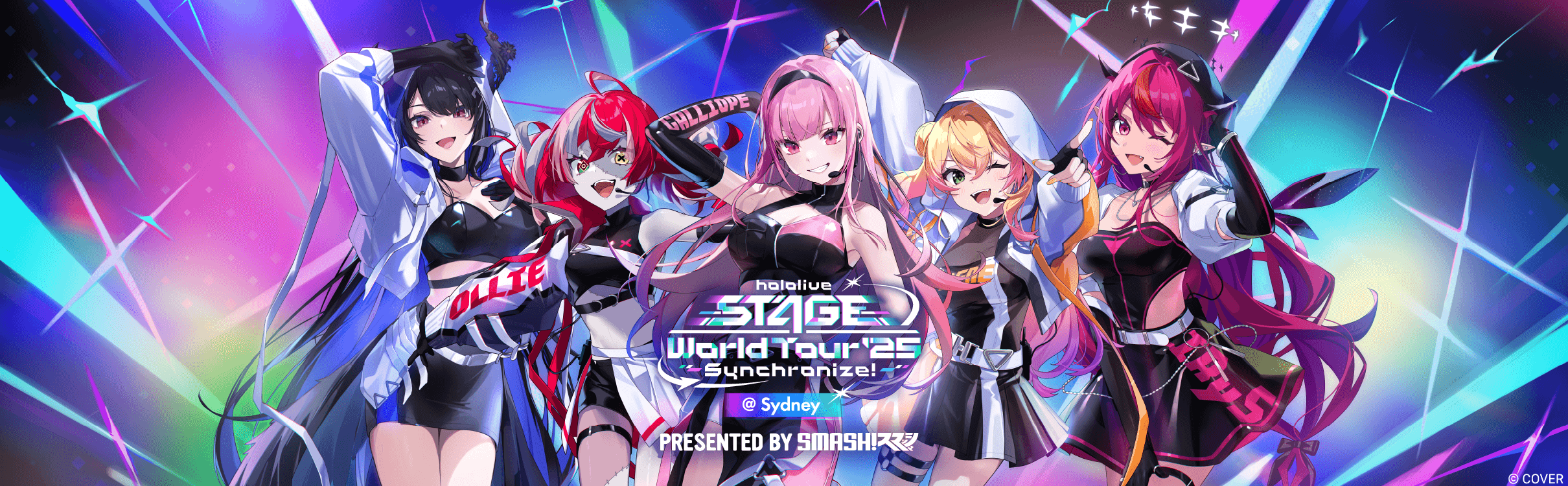 Get your hands on the exclusive and coolest merch from the hololive STAGE World Tour '25 -Synchronize!- @Sydney presented by SMASH! at ICC Sydney.