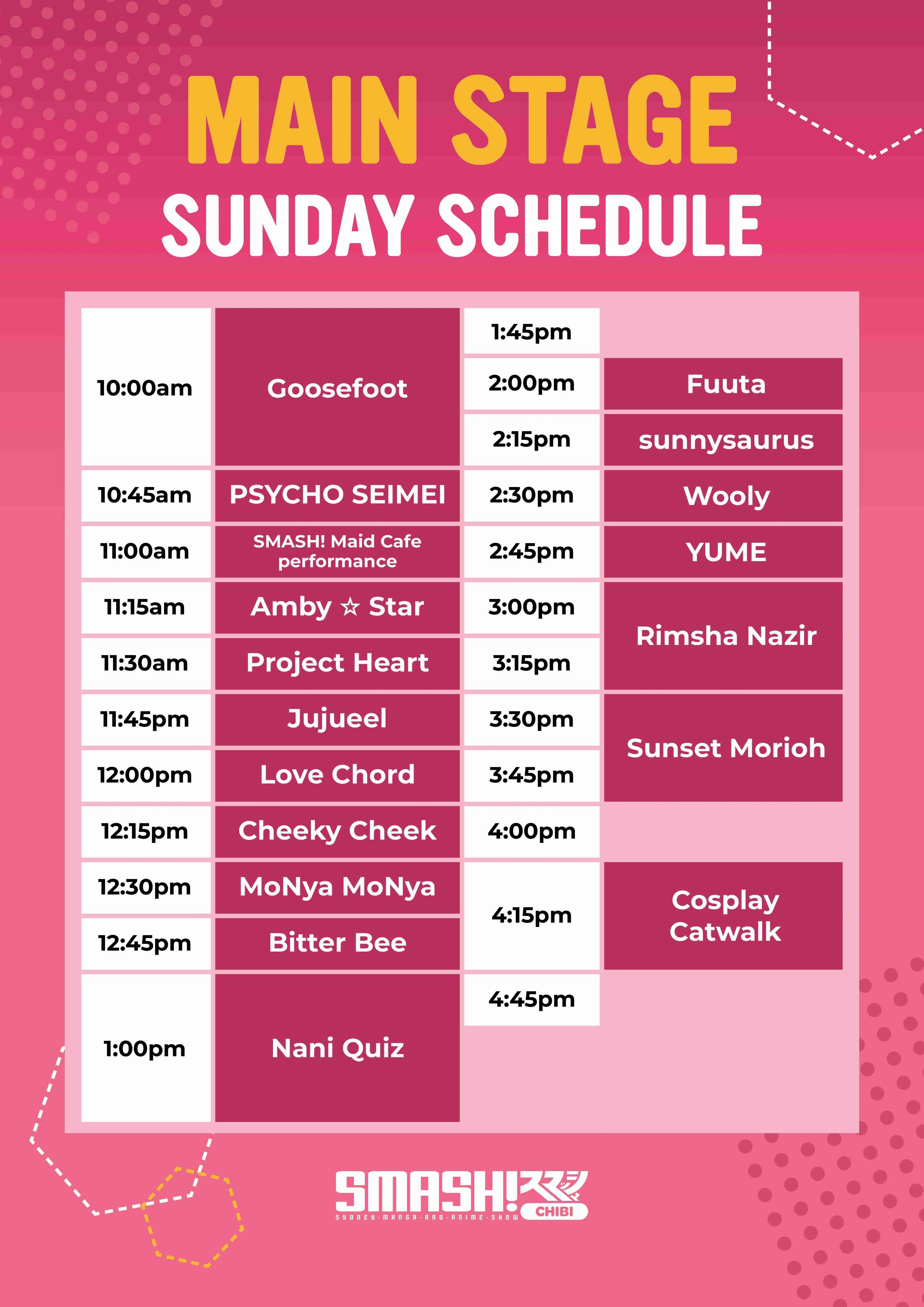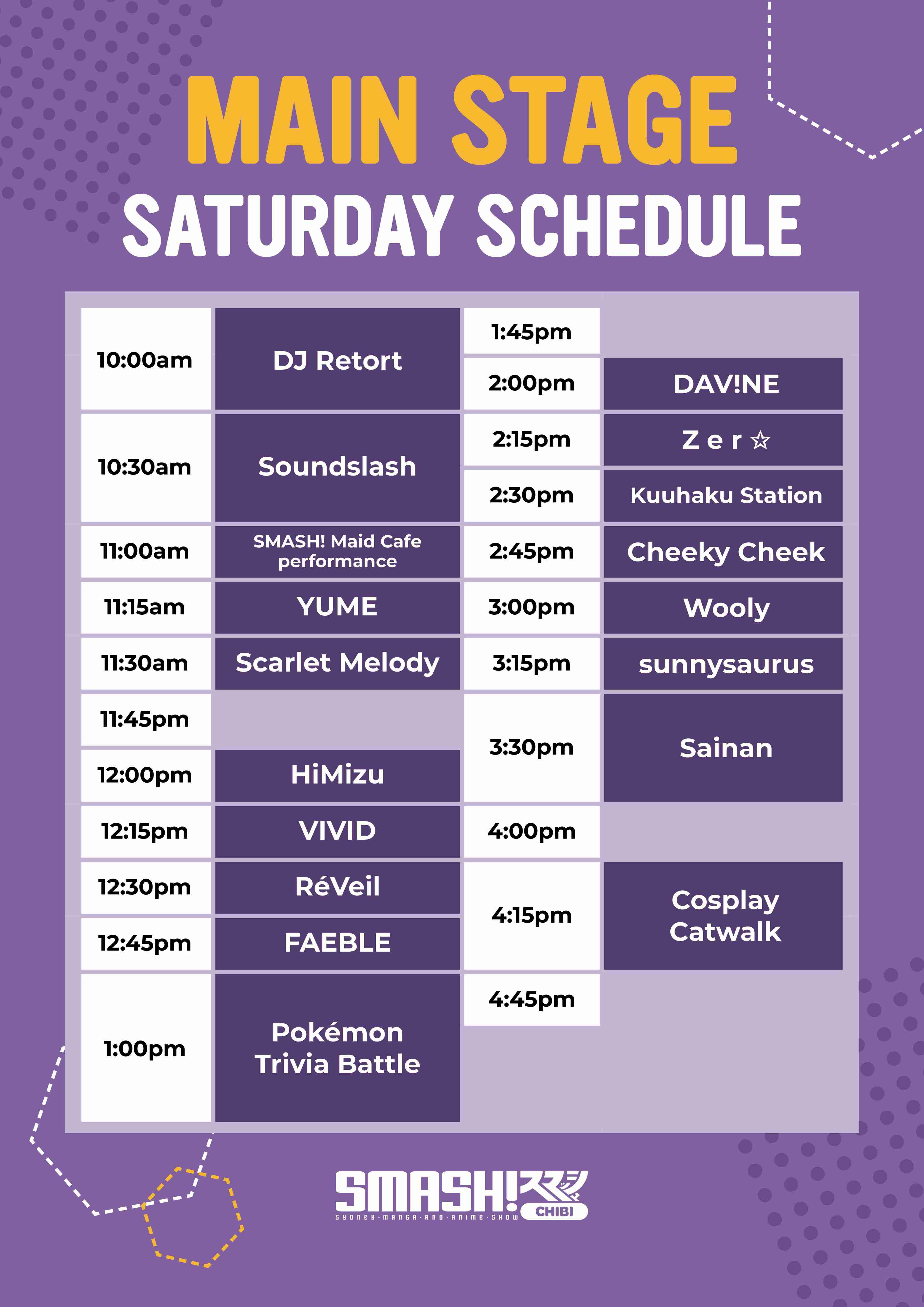 Plan out your weekend at SMASH! Chibi 2025, with our handy schedule below!