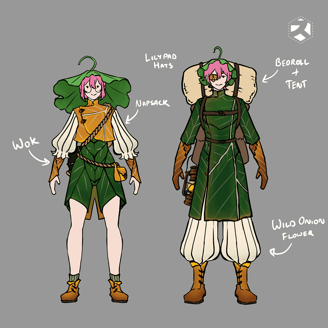 Our artist, @hydro.phb incorporated the use of vegetables that we may find in our daily lives for Skadi and Cyrus's themed outfit for this year's theme. We love the cute lilypad hats to keep them cool under the sun, or use as a drinking cup when needed! 🍀🌼